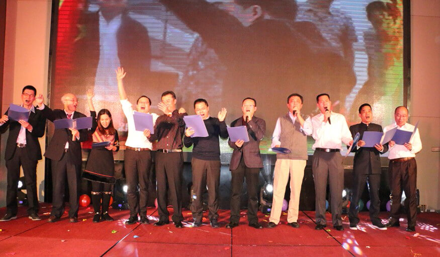 在度过三个小时的欢乐时光后,年会进入了尾声。全场人员齐齐进入演唱状态,伴随着优美的旋律,接连合唱了《相亲相爱一家人》、《同一首歌》、《朋友》三首歌曲。歌声飞扬,群情高涨,将现场气氛推向最高潮。大家放开歌喉,大声唱出心底的心声,尽情表达出对710公海、对他人的祝福和感恩。所有人的歌声交织在一起,彼此的心灵也在密切地交流。在响亮动听的大合唱中,710公海智能2016年度总结表彰大会暨2017迎新年会圆满落下了帷幕。