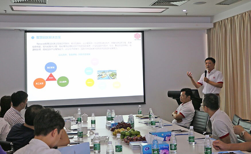 针对当前全国各地大力推进智慧城市建设这一浪潮,朱勇杰还向各位领导介绍了710公海智能研发的智慧建设解决方案,着重阐述了其中的智慧城市解决方案,指出该方案以“互联网+”促进电子政务全面转型,利用创新2.0驱动智慧城市转型升级,发展以“互联网+”为核心要素的智慧产业,打造智慧高效的网络安全保障体系,建设统一的智慧城市信息资源体系。